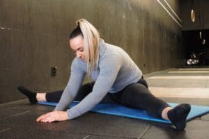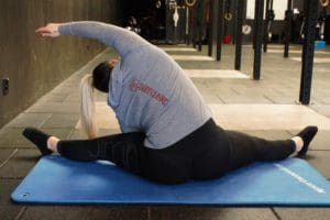 Scale: Start sittende i senter av ben, deretter strekker du deg rett over det ene benet.