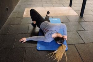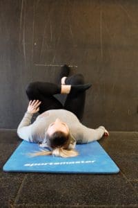 Tips: begge skulderbladene skal være i kontakt med bakken. Målet er å få benet som legges over til å være nær bakken.
